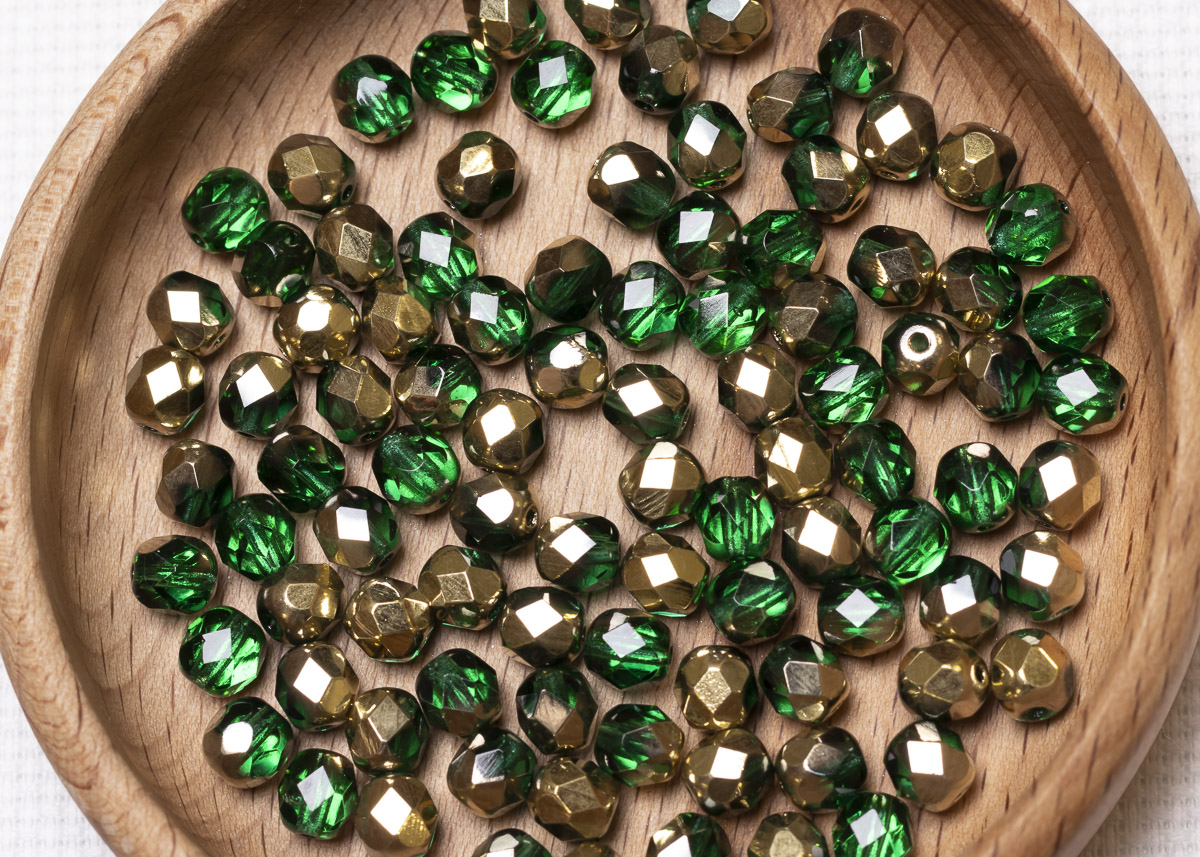 Бусины полированные круглые 6мм 25г (90 штук) 50230 оливковый прозрачный