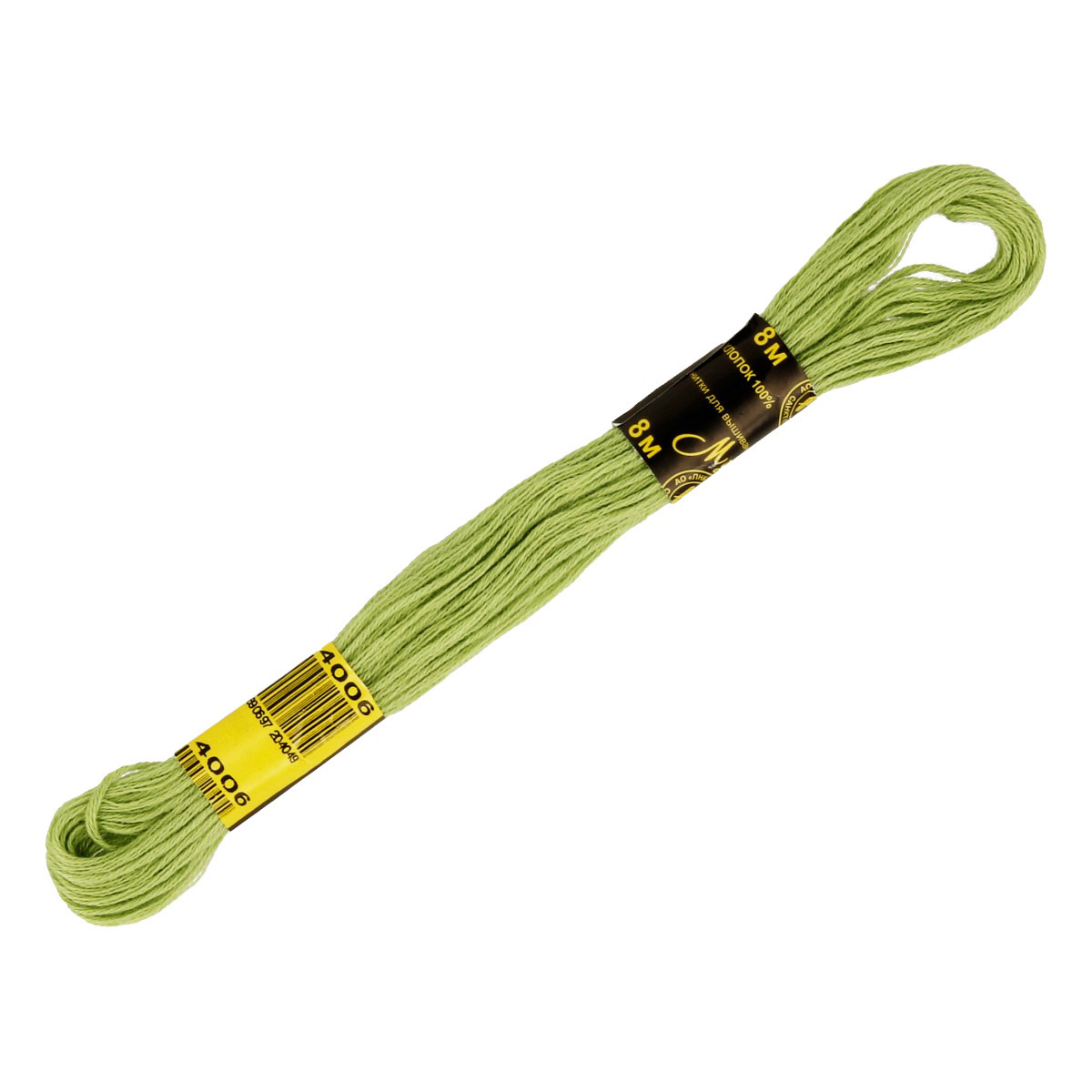 Нитки для вышивания "ПНК им. Кирова" мулине 100% мерсеризованный хлопок 8 м №4006 гр.салатовый